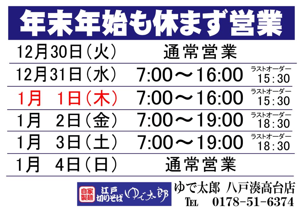 年末年始につきまして、下記の通り営業時間を変更させて頂きます。